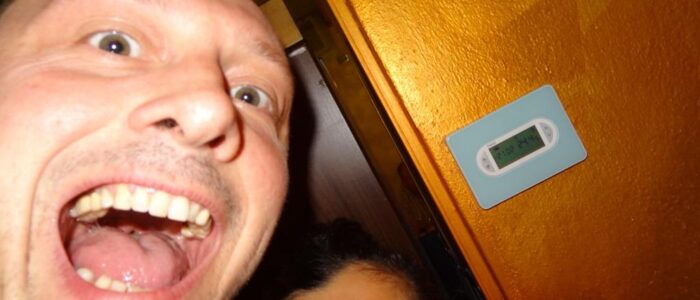 Terwijl ik serieus met zijn broer Carlo praat over hun websiteAngelo & Ledi zie je op de foto’s dat Angelino het niet kan laten om mij voor de gek te houden. De ondeugd straalt van hem af. Deze tweede broer heeft een relatie met Ledi, die zich de benen onder haar kont loopt om alles in de zaak geregeld te krijgen.