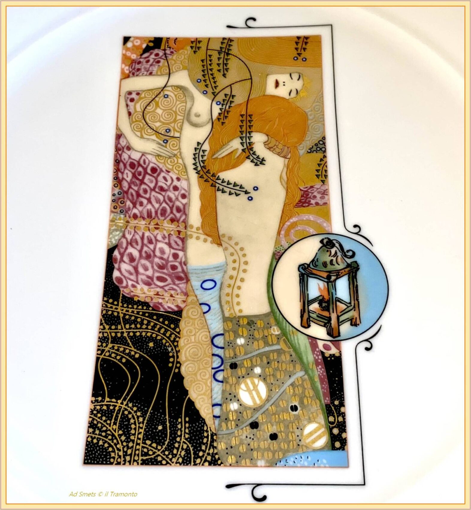 Hadden we de prachtige borden nóg beter bekeken, dan hadden we het kunnen bevroeden dat het ‘lantaarn’ betekende. Wij hebben alleen maar de afbeelding van Klimt gezien, precies in die tijd hadden wij een tentoonstelling met mozaïekwerken van Klimt! Wat een toeval!