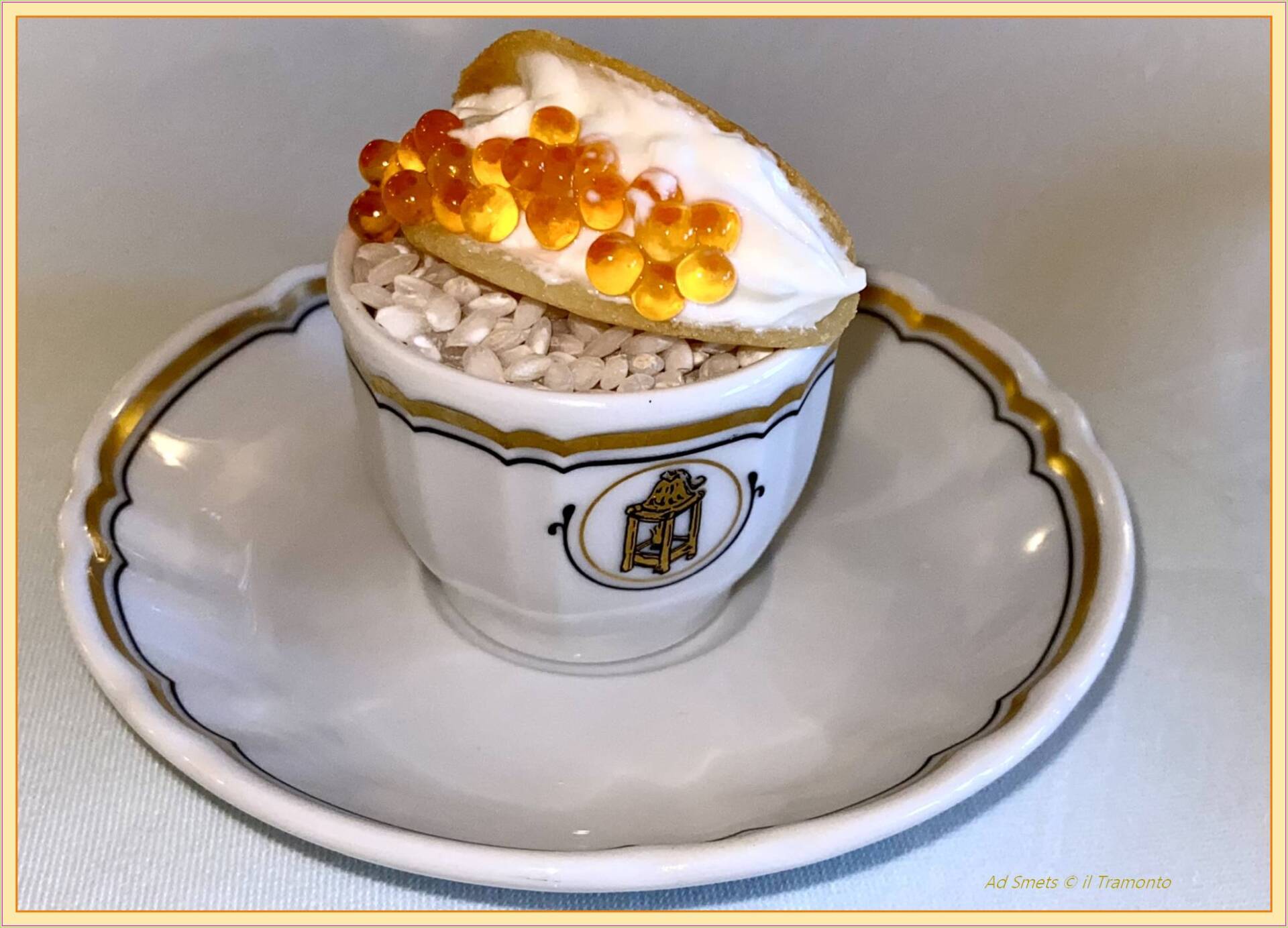 * Forelkaviaar in combinatie met een verfijnde ricotta en een parmiggiana van aubergine, tomaat en Parmiggiano Reggiano