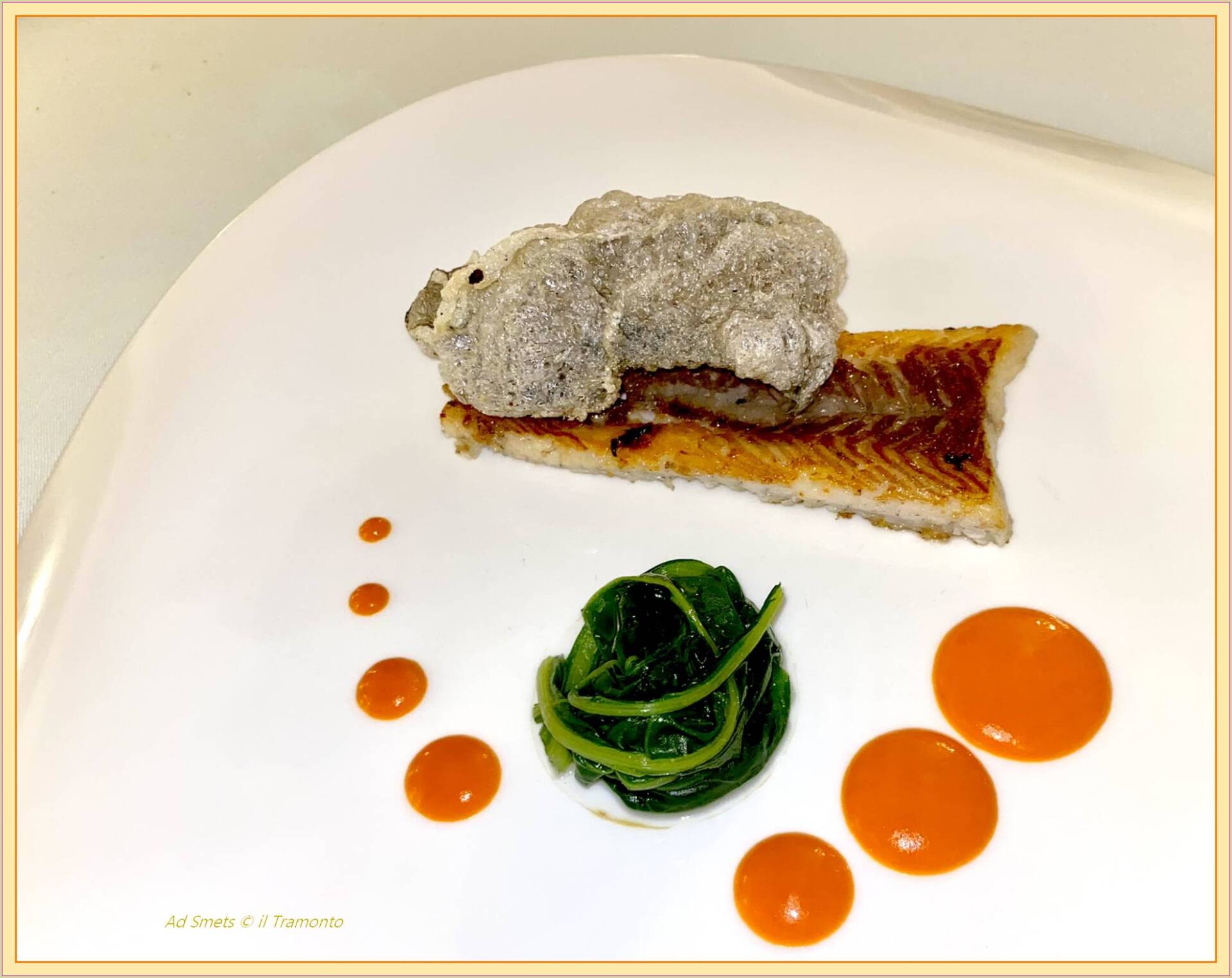Hier was alles perfect, niet alleen het tempo, doch ook de ambiance, de bediening, het servies. De borden van de ‘gerechtjes’ waren bijzonder mooi opgemaakt en over smaakt niets dan lof. Oh, wat was dat allemaal geweldig lekker, echt fantastisch. De foto’s spreken voor zich! Stel dat wij ons als mierenneukers zouden opstellen, dan zouden we kunnen opmerken dat de glazen beter gepoleerd hadden mogen worden. We zagen namelijk vingerafdrukken op de glazen, iets waar wijzelf erg op letten als we gasten te eten krijgen.