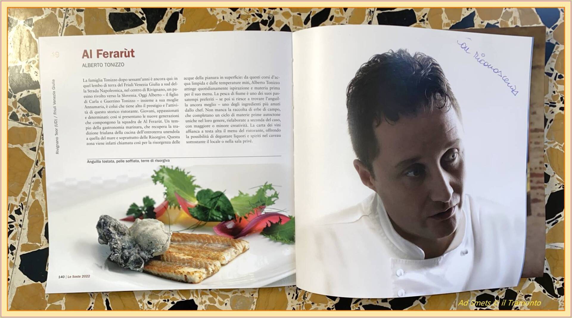 Wij vroegen nadien aan de vriendelijke Alberto Tonizzo hoe het zo is gekomen: “Voor iedere kok is de Michelinster de grote trots. Helaas heb ik de ster verloren in een minder rooskleurige periode van mijn restaurant. Corona heeft ons niet goed gedaan en gooide echt roet in het eten! Wij herwinnen dit pronkstukje zeker weer, daar hebben wij vertrouwen in. Gedurende de tien jaar dat we de ster mochten voeren hebben we een goede naam opgebouwd in de regio en ver daarbuiten zoals ook in Oostenrijk. Bovendien wordt ons restaurant gekenmerkt door een soliede basis; in meer dan zestig jaar hebben wij veel zeer tevreden klanten die trouw terugkomen en krijgen we nog steeds hoge waarderingen van andere restaurant gidsen. Niettemin gaan we de schouders eronder zetten om een solide basis te herwinnen om de kwaliteit volgens de Michelin gids naar minstens één ster op te krikken.”