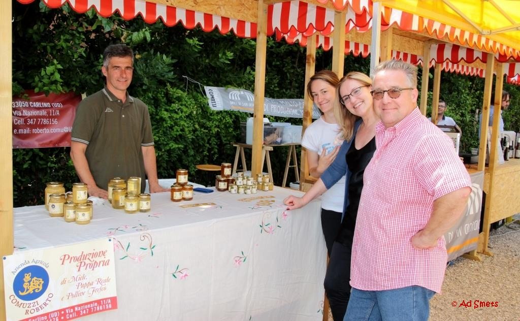 In en rondom het koetsenmuseum van Villa Manin Kechler in San Martino (di Codroipo) werd een dag georganiseerd met als thema ‘Gusta Medio Friuli’, oftwel ‘Proef Midden-Friulië’. Een proeverij van authentieke streekproducten met o.a. kaas, vis, (uiteraard) wijn en honing. Bij de stand van imker/honingproducent Roberto Comuzzi hebben we bijenpollen geproefd.