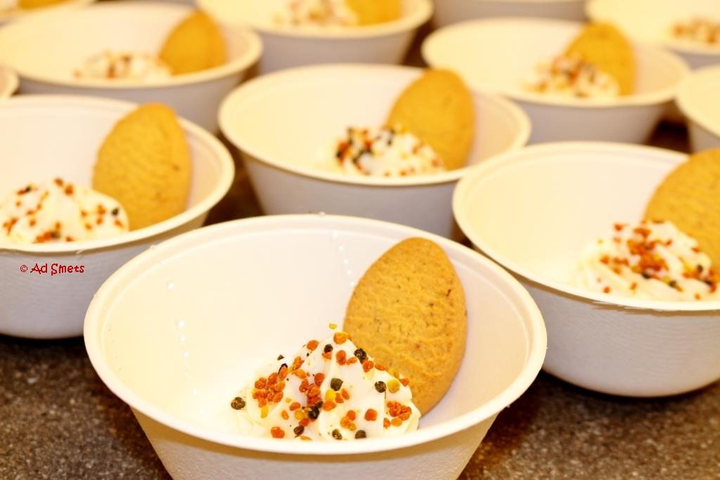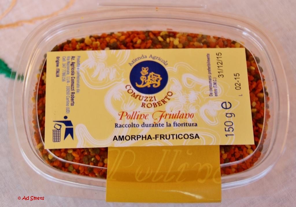 Na al die uitleg werd het tijd om dit superfood te proeven. Roberto Comuzzi liet ons twee varianten proeven. Beiden hadden een zoetige smaak, maar niet zo zoet als honing. Waar de eerste wel enigszins naar honing smaakte, was de tweede variant veel krachtiger en kruidiger alsof de bijen net het stuifmeel van kruidenplanten hadden verzameld. De tweede variant bevatte ook zwarte korreltjes, het leek wel maanzaad. Dit bleek het stuifmeel van ‘papavero’ de klaproos te zijn.