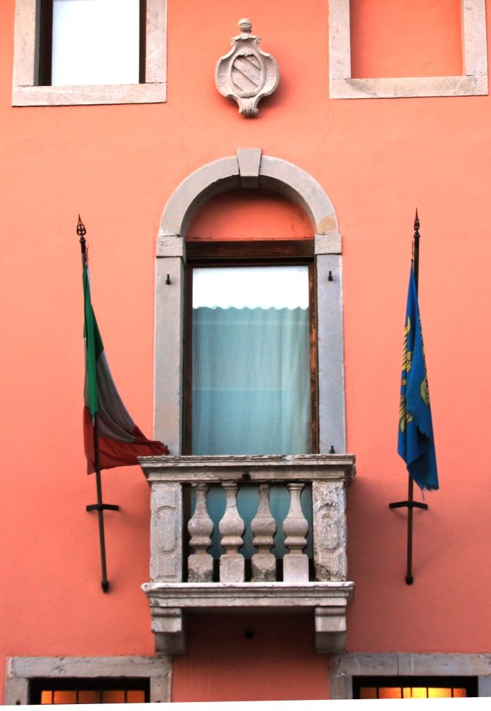 De voorgevel wordt gesierd door een boogvormig venster met zuiltjesbalustrade met daarboven het wapenschild van de Graven van Varmo. Het pand wat nu nog bestaat is het laatst overgebleven deel van een enorm landgoed van 87.000 vierkante meter. In 1988 is het aangekocht door de gemeente (Mortegliano) en doet het nu dienst als cultureel centrum en bibliotheek. Helaas is door de eeuwen heen en zelfs door de meest recente renovatie veel van het oorspronkelijke karakter verloren gegaan. Met name de achterkant van dit eeuwenoude pand ziet er door het nieuwe stucwerk té nieuw uit. Maar goed, het is een blijft een historisch pand verbonden met de geschiedenis van deze stad.