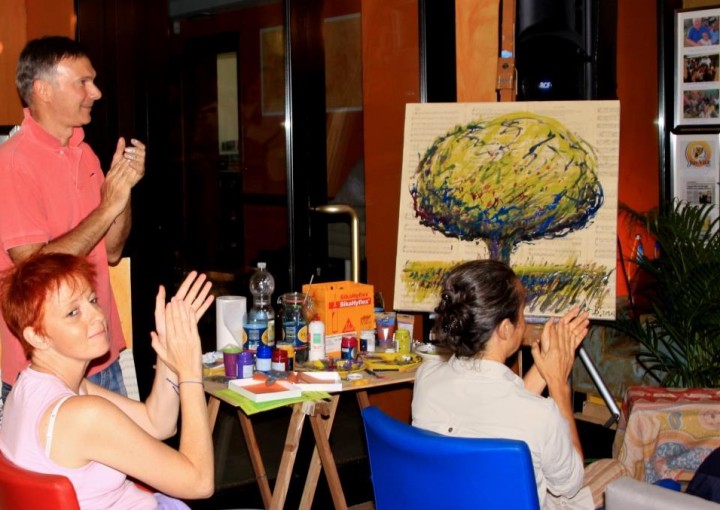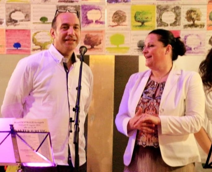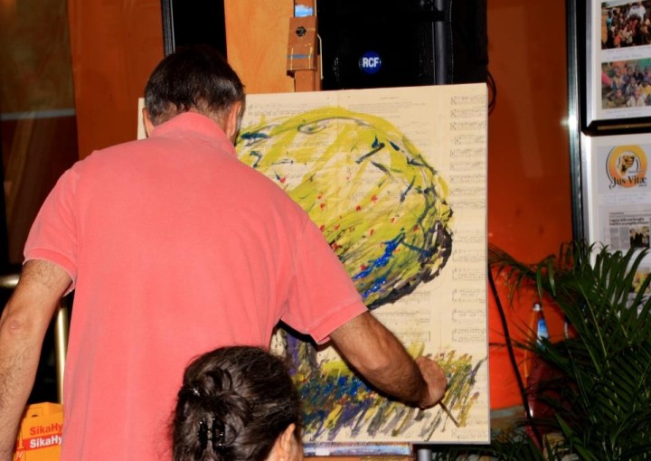 Valter Iuretig heeft speciaal voor deze avond een lied gecomponeerd dat tijdens deze benefietavond werd gelanceerd en opgedragen aan Pater Pino Piglisi, een pater die goede dingen deed in de maatschappij maar door de Mafia werd vermoord. Het verhaal hierachter kun je in onze eerdere blog lezen, klik hier. Tussen de prachtige muziekstukken van Valter (lees hier het interview met hem) droeg Tiziana Perini fantastische en emotionele gedichten voor. En verder had Franco de kunstschilder Lucio Battistutta uitgenodigd om tijdens het concert schilderijen te maken die daarna werden verkocht. De opbrengt van gehele benefietavond komt ten goede aan de Stichting ‘Recht op Leven’ van pater Antonio Garau die allerlei goede dingen doet ook in Afrika.