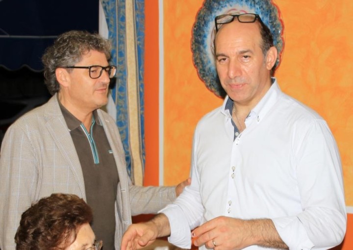 Franco en zijn vrouw Cristina waren deze keer de sterren van de avond. Als organisatoren van dit benefietevenement mogen zij bijzonder tevreden terugkijken op deze gezellige en mooie avond. Bijzonder veel mensen zijn naar Hotel Centrale (Sandron) gekomen. Pastoor don Rinaldo kwam nog naar ons toe en omhelsde ons en met een hartelijke smakkerd bedankte hij ons voor alle goede dingen die we doen voor ons dorp. Een benefietdiner, waarbij je voor € 20 kon eten en drinken tot aan ‘de hemel’ zal zeker een oorzaak zijn van de drukte onder het toeziend oog van de pastoor. Maar wat wil je, als je gekoppeld aan deze avond een regionale ster uitnodigt met zijn band (allemaal topartiesten) en hét gospelkoor van de regio Friuli Venezia Giulia?