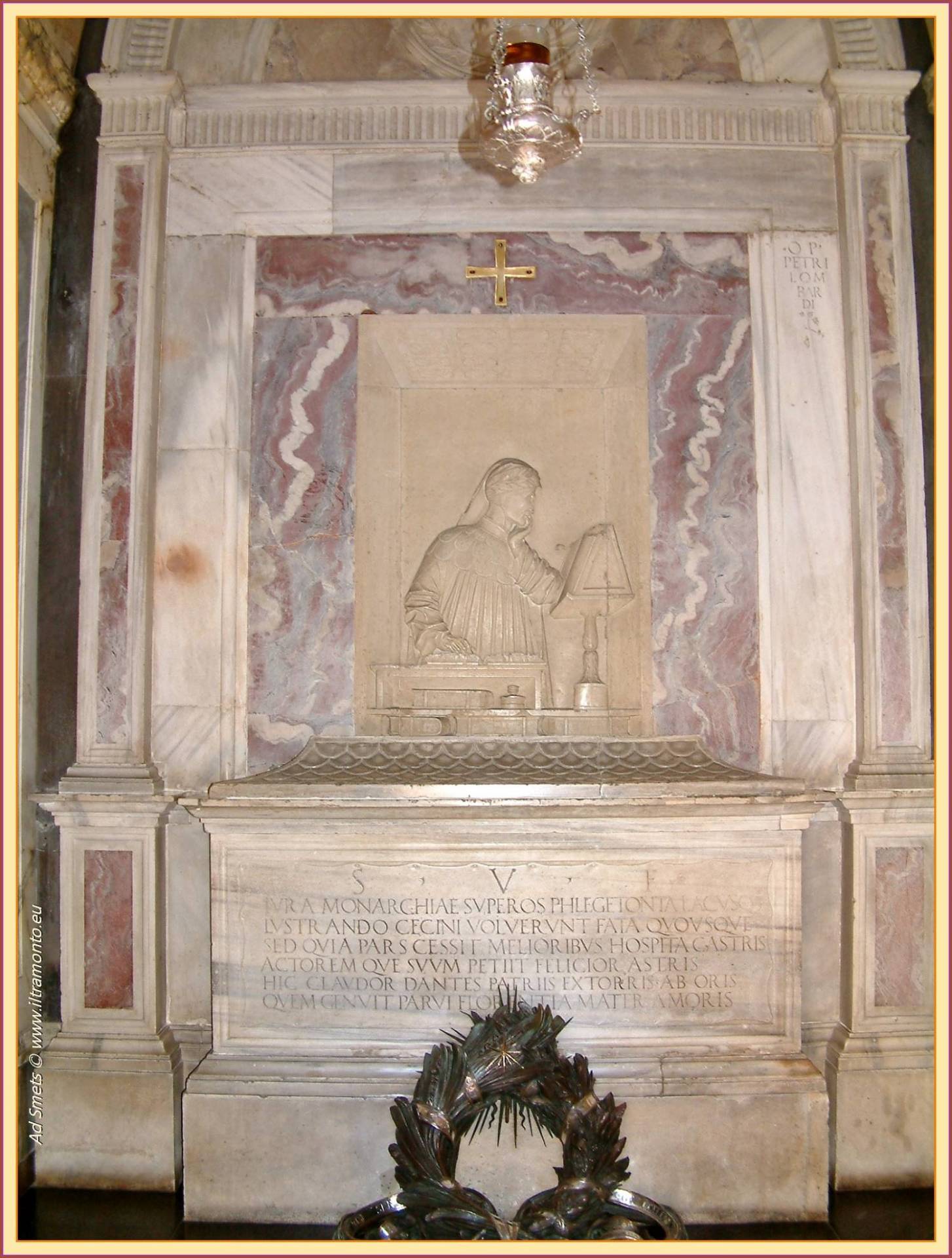 Je treft er het kunstwerk aan van Pietro Lombardo met de afbeelding van een lezende Dante achter zijn bureau. Merkwaardig genoeg is het reliëf bijna 300 jaar ouder dan het graf en maakte het aanvankelijk deel uit van de Basiliek van San Francesco.