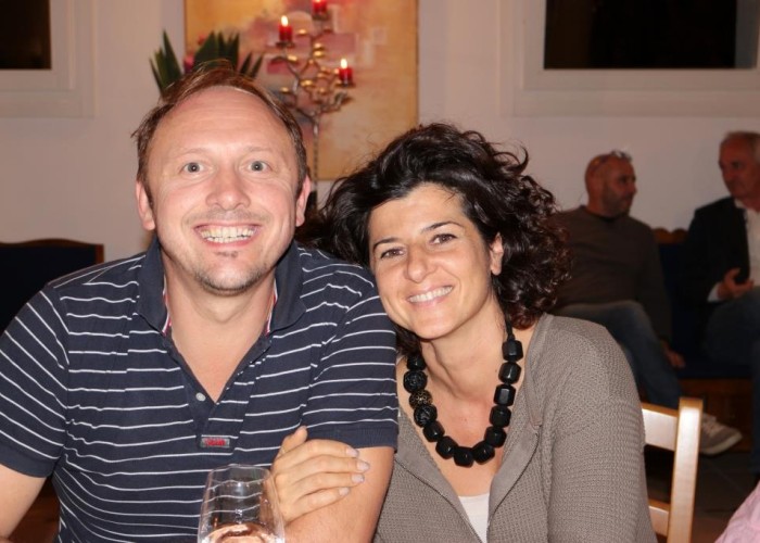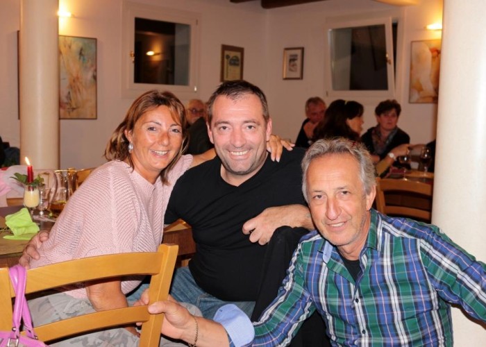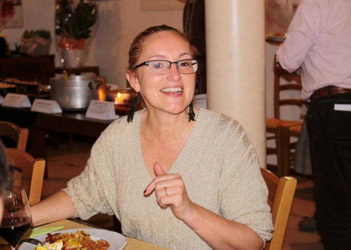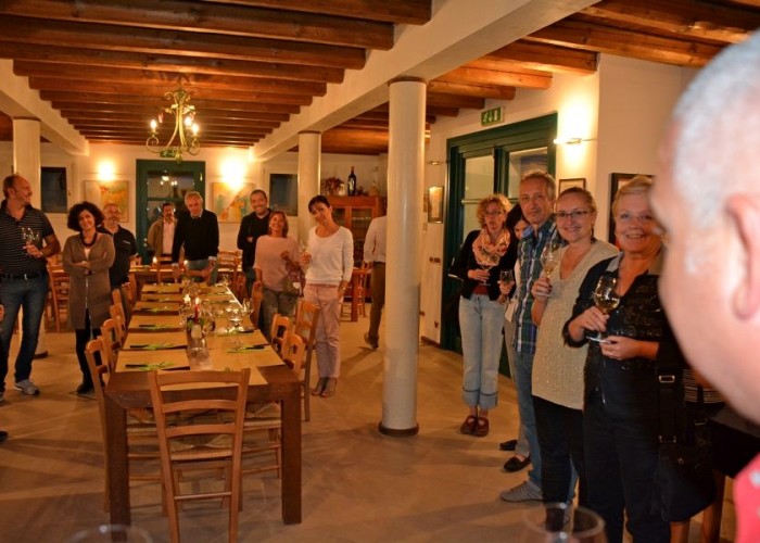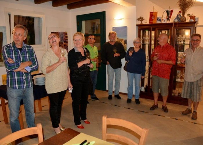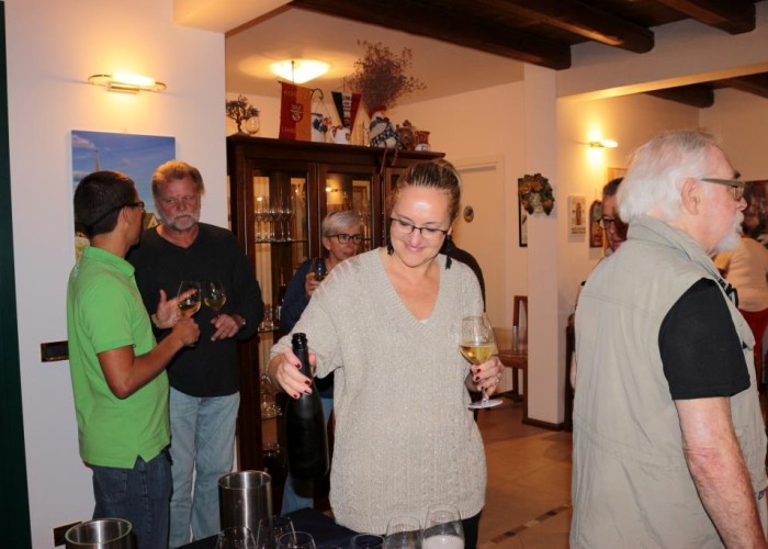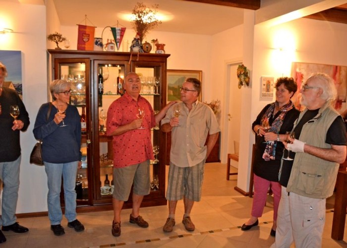 Jammer dat er die dag onweer dreigde! Alles zou in onze tuin hebben moeten plaatsvinden. Waar laten we nu meer dan 30 mensen? Die passen niet in onze huiskamer. Gelukkig hebben we veel vrienden met grote huizen. De familie Ferrin (wijnboer te Camino Al Tagliamento) bood gelijk hulp aan.