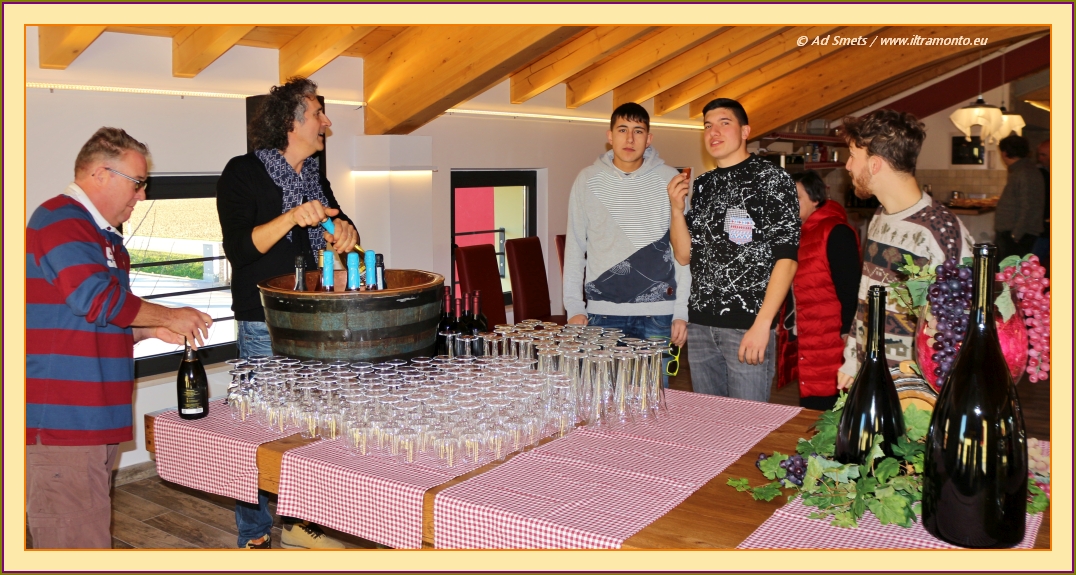 Uiteraard kon een bezoek aan wijnhuis vlakbij Lignano niet ontbreken. Wijnhuis Umberto Baccichetto heeft met hun Prosecco dit jaar de il Tramonto Golden Gondola Award gewonnen en directeur/eigenaar Roberto De Nicolò had ons uitgenodigd om samen met hem de bewoners van Amatrice op een ‘brindisi’, een proost op het Nieuwe Jaar te trakteren. Nou ja, zo’n uitnodiging nemen wij van harte aan. Zeker om de getroffen bewoners een hart onder de riem te steken.