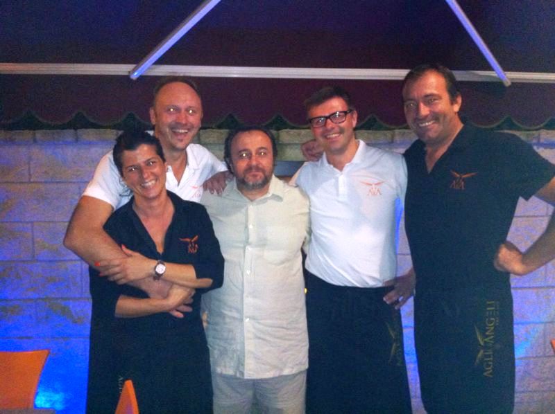 Het restaurant Agli Angeli in ons dorp Pertegada is niet alleen bekend bij de lokale bevolking, Italianen en de buitenlandse gasten in de weide omgeving. Ook beroemde Italianen komen een vorkje prikken bij de drie gastheren van Agli Angeli. Recentelijk bezochten de (in Italië beroemde) Italiaanse acteurs Claudi Barbieri en Natalino Balasso ons stam-restaurant. En zoals het dan eenmaal gaat: met iedereen op de foto!