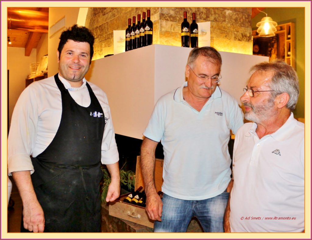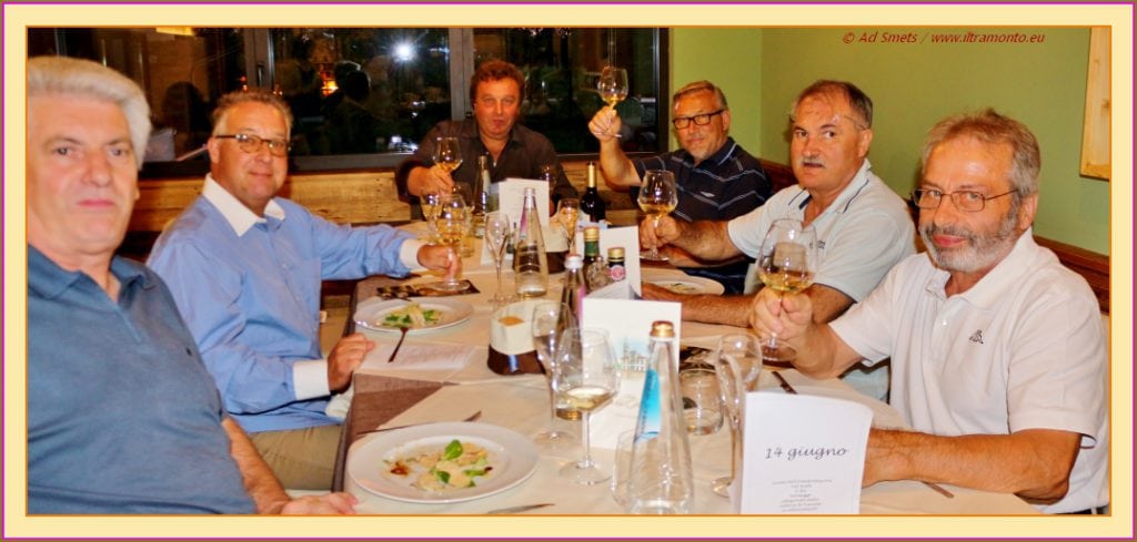 “Jullie schrijven over wijn maar ook over de Italiaanse keuken? Wat leuk, is daar belangstelling voor in Nederland en België?” zo vroeg ook Adriano, de vertegenwoordiger van de honing, die zich bij ons had gevoegd. “Jazeker, we hebben inmiddels een geweldig lezersaantal en we merken dat erg veel lezers het zalig vinden om de verhalen over eten en drinken te lezen,” aldus een trotse Sjaak die eigenlijk de hoofdpersoon van il Tramonto is als het gaat om kokkerellen. Ik heb een grote mond, verkoop zelfs gebakken lucht als het moet, lust het allemaal graag, maar hij is de echte kok van ons beiden.