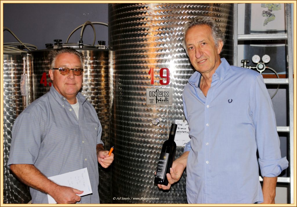 Paolo: “De Friulaanse bevolking is er niet aan gewend dat deze populaire wijn houtgelagerd is en dan zou zeker een op eikenhout gelagerde versie als veel te ‘zwaar/heftig’ worden ervaren. Daarom heb ik er voor gekozen om deze wijn te laten rijpen op acaciahout. Door het acaciahout behoudt de wijn zijn fruitige karakter waaraan ieder gewend is maar krijgt de wijn wel een strogele kleur en een licht honingachtige en verfijnde smaak.”