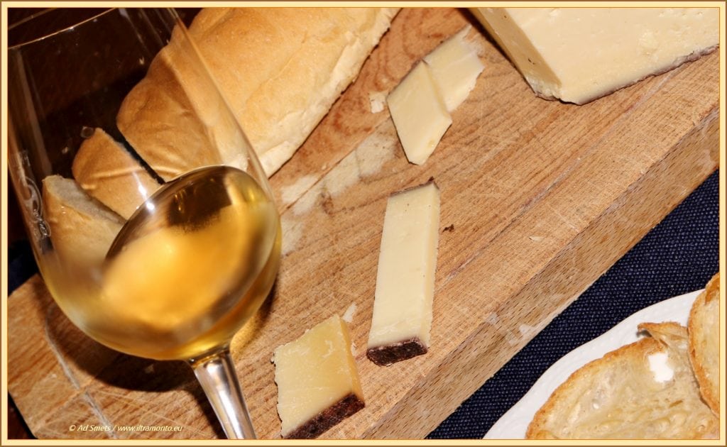 Bij Ferrin kregen we bij de Hesperus een formaggio ubriaco (dronken kaas), een Montasio die na 6 maanden rijping nog eens twee maanden heeft nagerijpt onder wijndroesem (van rode wijn van Paolo Ferrin). Over een goed huwelijk gesproken……