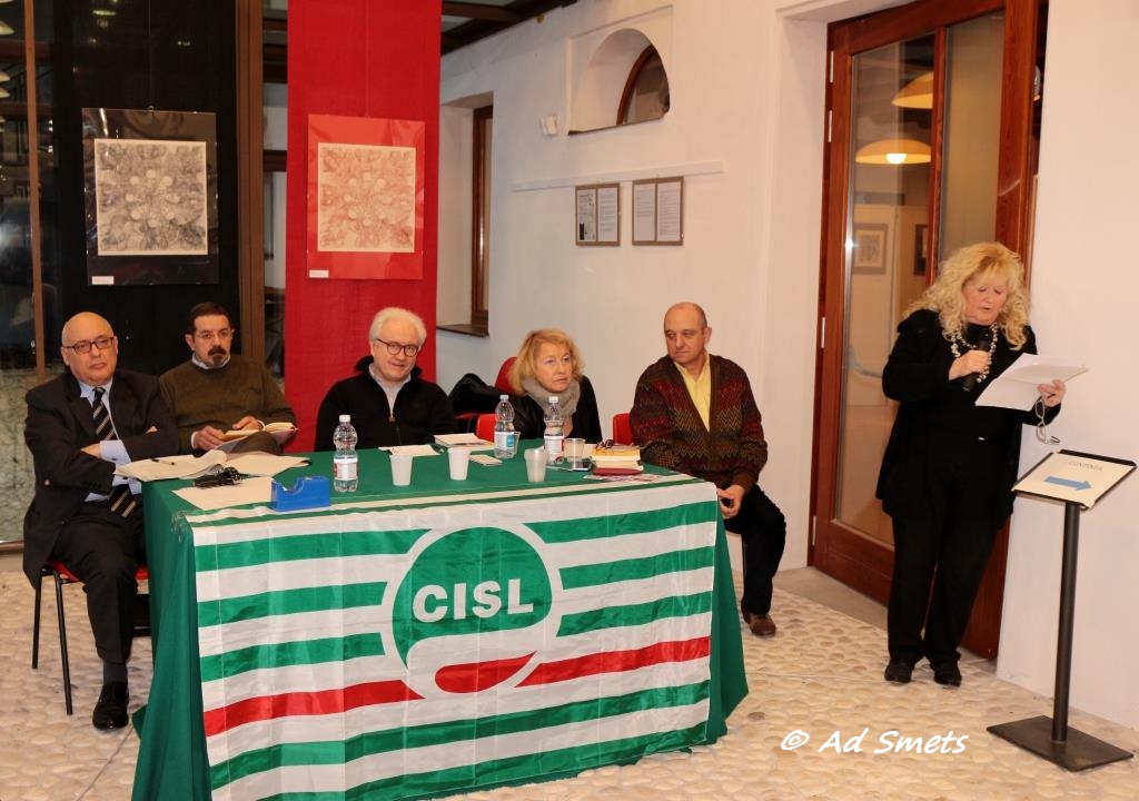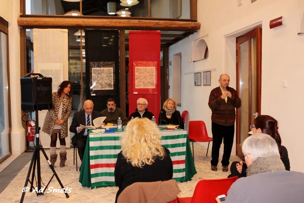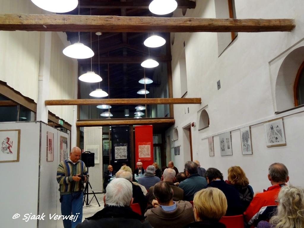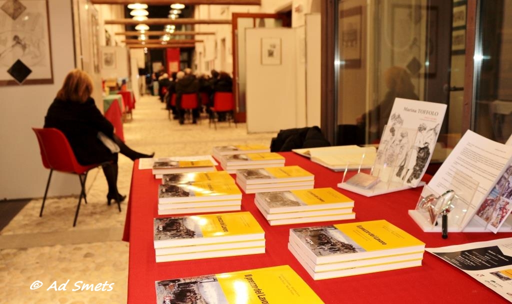Een van onze Italiaanse vrienden, Mauro Tonino, is schrijver. Deze keer heeft hij met 3 anderen, een professor in de rechten, een journalist en een arbeidssocioloog, een boek geschreven over ‘de prijs van de arbeid’. Wij waren bij de presentatie aanwezig die nota bene in een deel van het tot expositieruimte verbouwd koetshuis van Villa Manin Kechler plaatsvond.