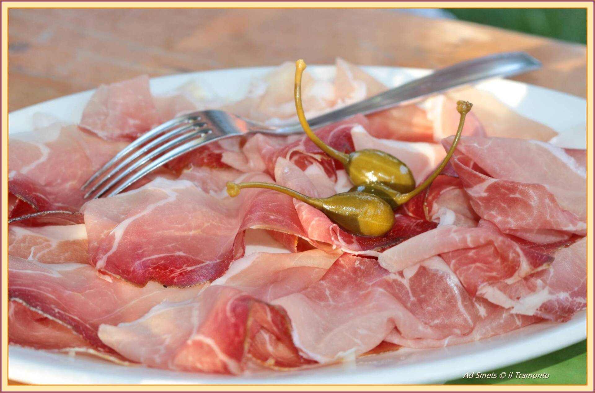 Na de rondleiding werden we hartelijk uitgenodigd om diverse biersoorten te ervaren, in combinatie met fantastische andere streekproducten. Een ding wisten we meteen …. dat we deze zaterdagavond niet meer zouden hoeven te eten. We werden op een enorme gastvrije wijze in de watten gelegd. Diverse soorten kaas met diverse soorten mostarda en honing, zalige gekookte beenham met ‘kren’ (mierikswortel), botermalse Prosciutto en diverse rauwe groente.