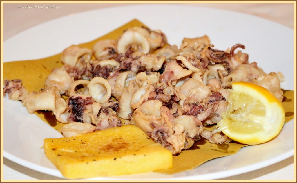 Ristorantino Agli Angeli: inktvis / calamari fritti. Hoe meer tentakeltjes, hoe lekkerder! Dit is een hoofdgerecht doch wij nemen dit gerecht samen als voorgerecht: lekker poeh!!