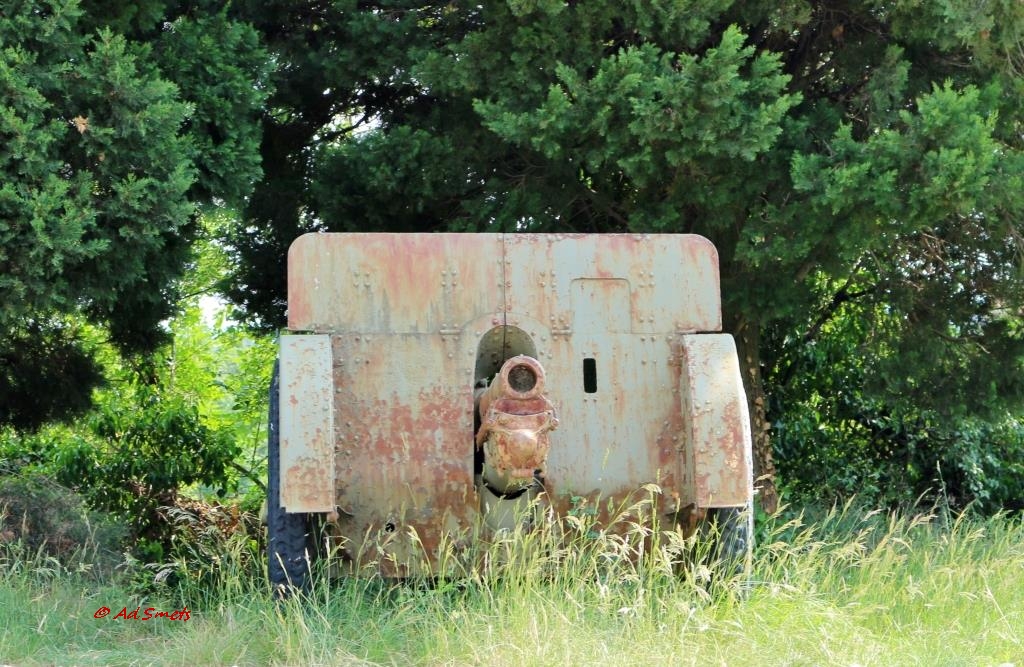 In dit gebied is in de laatste honderd jaren erg veel en intensief gevochten. In nabijgelegen Redipuglia alleen al liggen meer dan 110.000 doden uit de eerste wereldoorlog begraven. Logisch dat je op veel plekken langs de weg nog oude militaire wapens ziet opgesteld. Om vooral maar niet te vergeten dat er nooit meer oorlog mag komen.