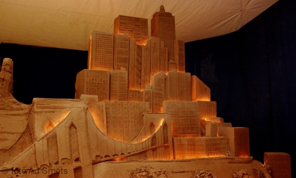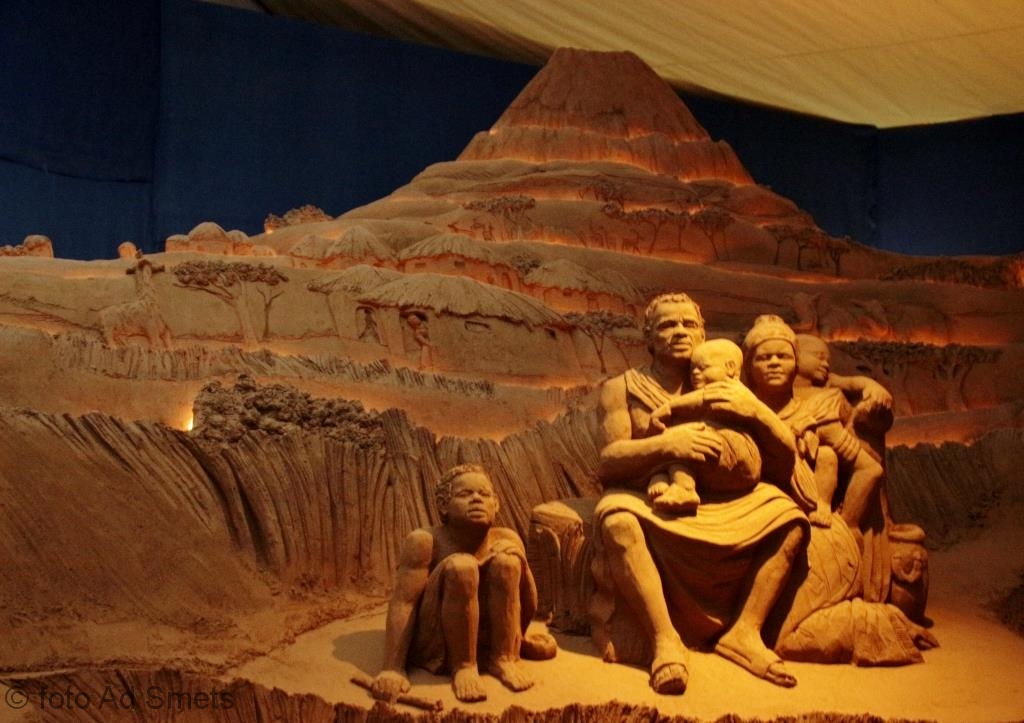 Wat ooit begon als een traditionele kerststal met Maria, Jozef, kindje Jezus, de herders en de beestenboel als zandsculpturen, is uitgegroeid tot een waar zandsculpturenspektakel. Zelfs wolkenkrabbers, bruggen en een ‘Taj Mahal’ ontbreken niet bij deze eigentijdse interpretatie van het begrip kerststal.