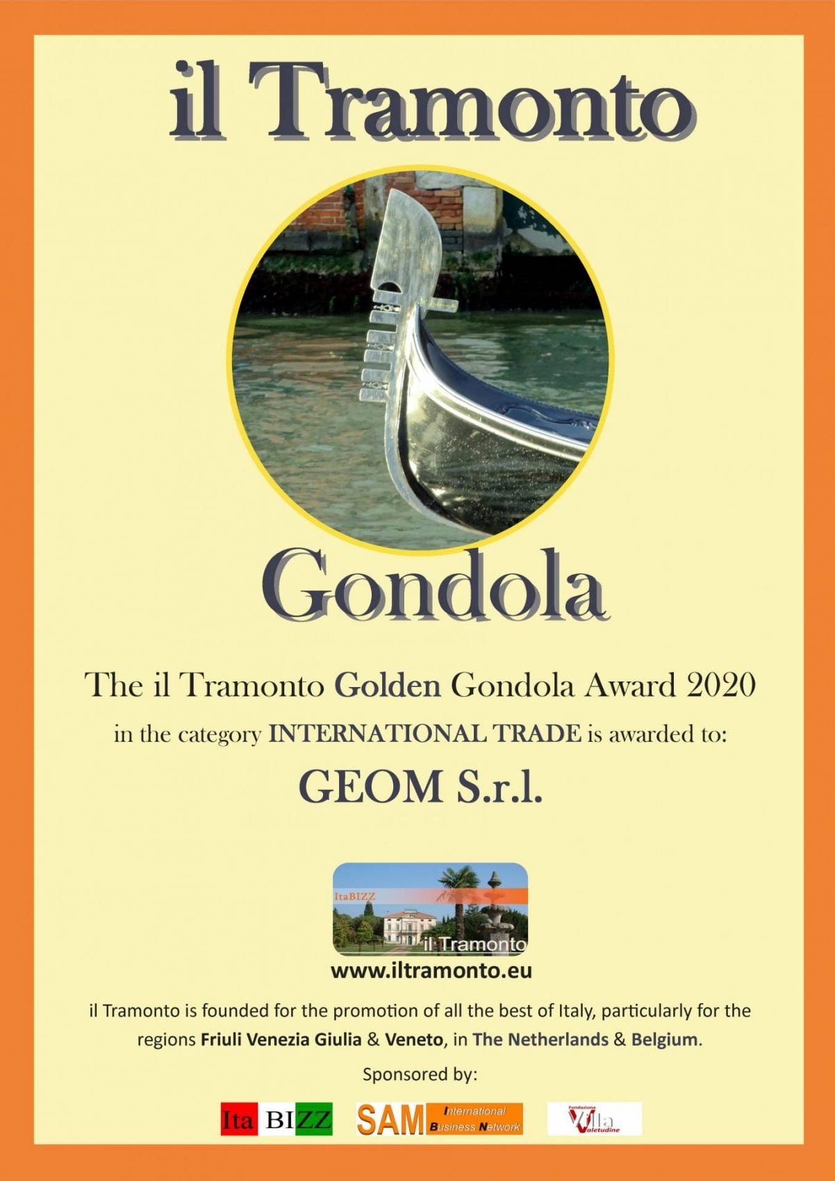 IL TRAMONTO GONDOLA d’ORO PREMI 2020-21 – Nella categoria ‘commercio internazionale’ il premio Gondola d’Oro 2020 Award è stato assegnato all’azienda GEOM srl.