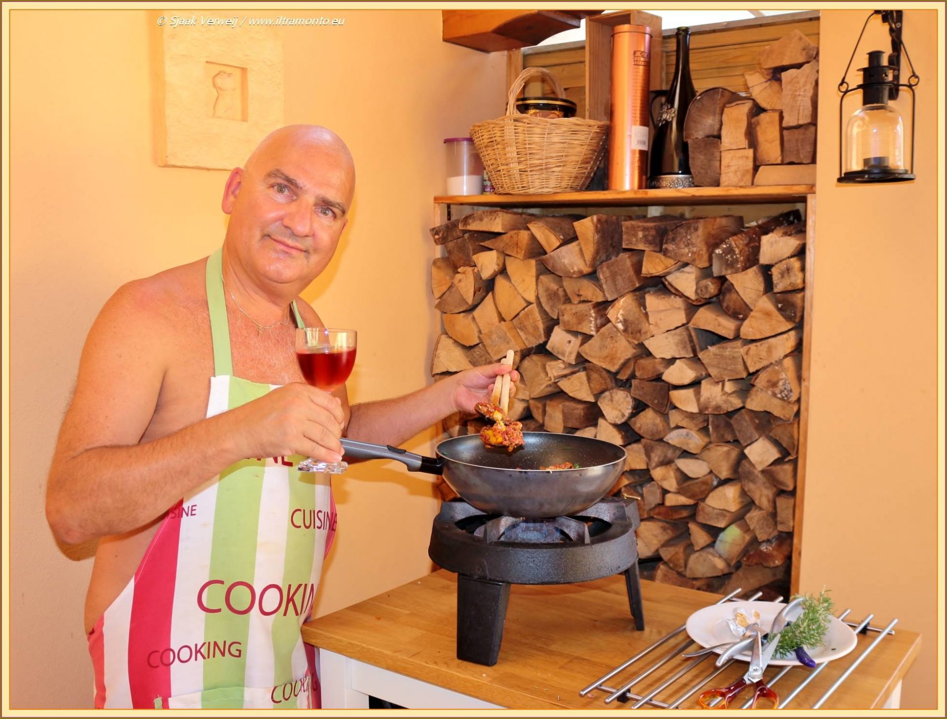 De warme golf duurt inderdaad al erg lang. Ook deze week nog uitschieters tot 35 graden en in Duitsland zelfs tot 41, het is begrijpelijk dat in vele huizen de temperatuur in de keuken flink is opgelopen. Ook in de onze heerst nu een tropische temperatuur, dus zoeken wij het op in de tuin. Niet de verkoeling, want die is daar ook niet te vinden. Wel wat vrije bewegingsruimte en mogelijkerwijs een zuchtje wind, wat maakt dat het koken – zo mogelijk – enigszins draaglijk wordt. Ware het niet dat vóór de BBQ staan niet direct soelaas biedt om verkoeling te vinden.