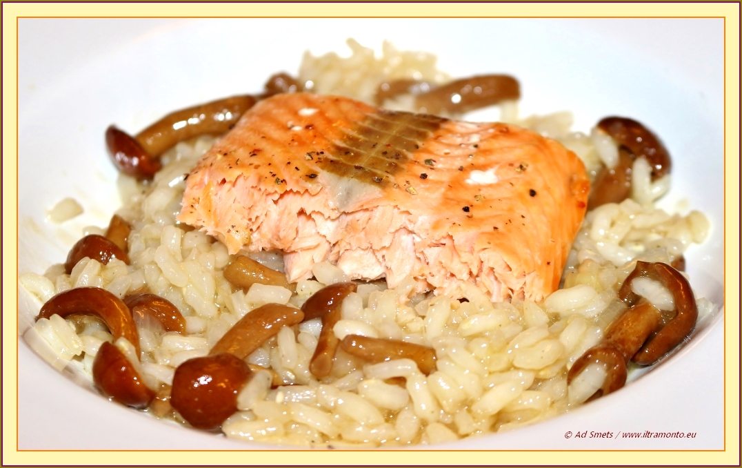 Wij aten deze risotto met een stukje gegrilde zalm en daarom zonder kaas.
