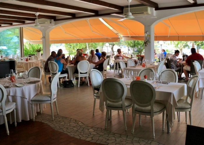 Maar hoe komen we er dan in? Wat een domme vraag zullen ze gedacht hebben! Mensen die daar vroeger een groot jacht hadden liggen en er nog wekelijks een ‘hapje’ komen eten, behouden de afstandsbediening van de zware toegangspoorten. Logisch toch! Tja, soms denken we toch nog te beperkt! Dus met de auto erheen en de poort ging open. We mochten het rijk der rijken betreden. Nu maar sjiek doen in de korte broek 🙂