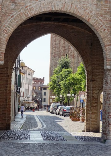 even 2 tot 3 uurtjes te vertoeven met oude stadspoorten, kerken, een enorm piazza (plein) en vooral, leuke, in eerste instantie onopvallende kleine ‘inkijkjes’. Natuurlijk is er een grote kerk, il duomo (kathedraal) uit 1479 en een loggia, een overdekte ‘marktplaats’ wat nu nog steeds fungeert als ontmoetingsplek voor jong en oud. Naast deze loggia bevindt zich het ‘VVV-kantoor met daarboven een klein theater uit de 17e en 18e eeuw wat onlangs gerenoveerd is in de stijl van de Venetiaanse theaters van weleer.