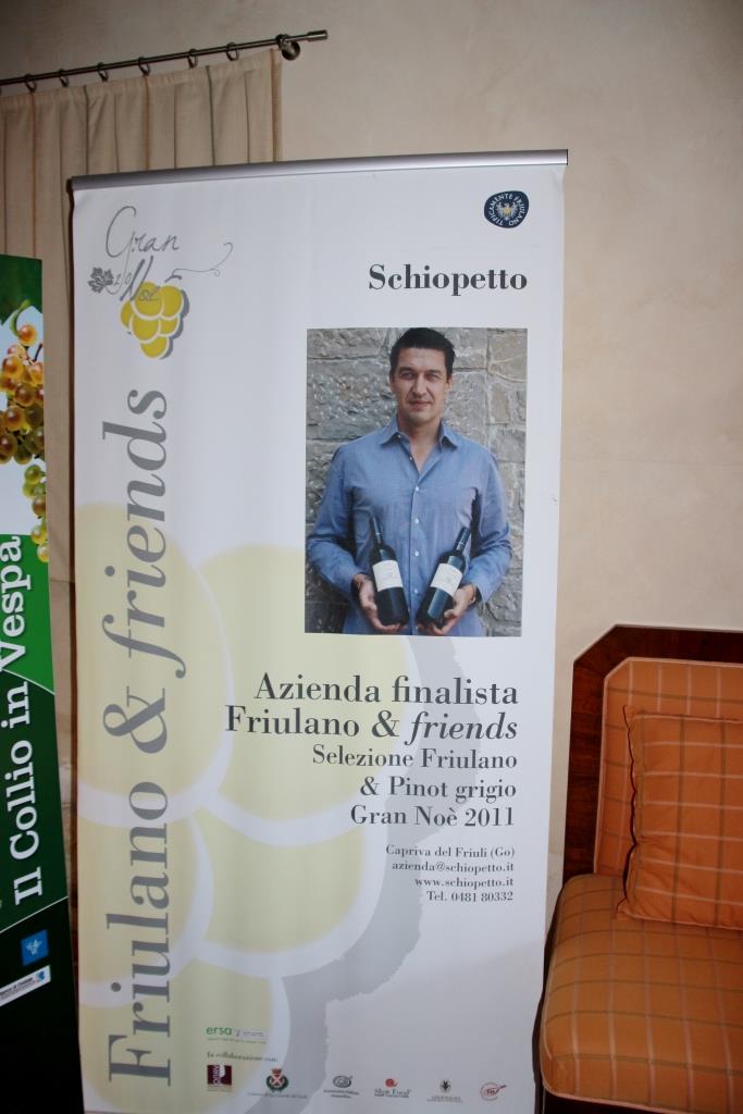 Het adres van wijnhuis Schiopetto is dan ook Via Palazzo Arcivescovile 1, Bisschoppelijk Paleisstraat nummer 1 (Capriva del Friuli). Dit alles bevestigde ons dat we bij een ‘chique’ wijnboer te gast te zijn. Ze beschikken zelfs over een gistkamer die is aangelegd om de autochtone gistsoorten te vermenigvuldigen. Wat zou hier een flesje wijn hier kosten? En mogen nu eindelijk eens iets proeven? Het wachten werd beloond met het proeven van 3 fantastische wijnen. Eerst de Pinot Bianco, vervolgens de lokale held Friulano (voorheen Tokay) en een rode blend ‘Podere dei Blumeri Rossi’ 2008. De prijzen die variëren van € 17 tot € 32 per fles liegen er ook niet om. Wat zal een fles gaan kosten voor een consument voordat deze in het buitenland op tafel staat? En …… wanneer de Nederlandse horeca de inkoopprijs met drie vermenigvuldigt voordat de fles op de wijnkaart verschijnt…
